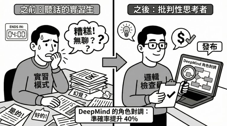 Google DeepMind 在 2025 年 12 月的最新測試中證實:僅僅透過一種稱為「Role Reversal」(角色對調)的提示技巧,就能讓 AI 在複雜的數學推理任務上,準確率大幅提升約 40%。
